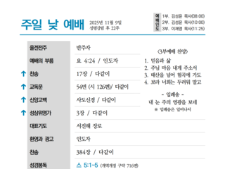 주일낮예배 오전 1부 08:00 / 2부 10:00 / 3부 11:25