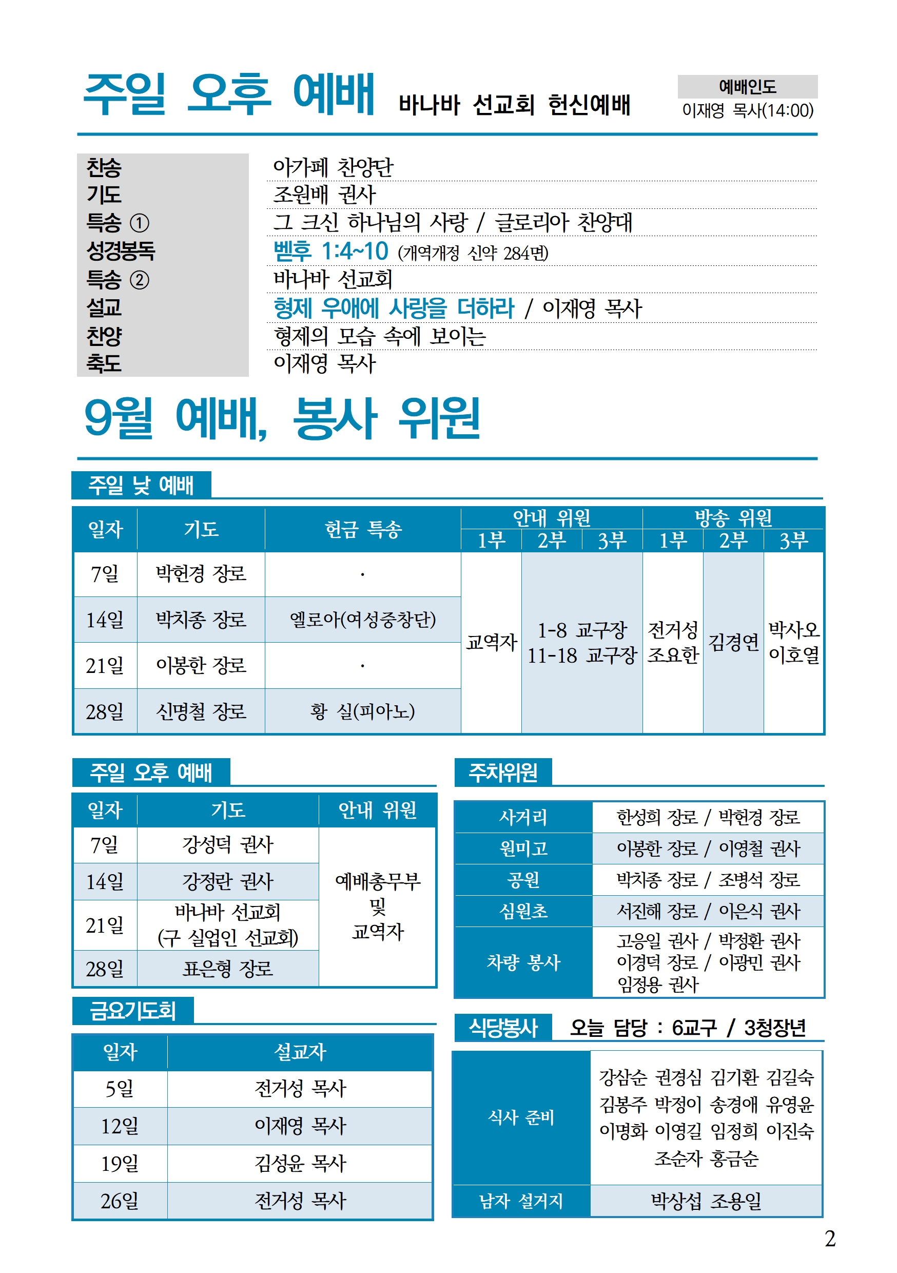 주일오후예배